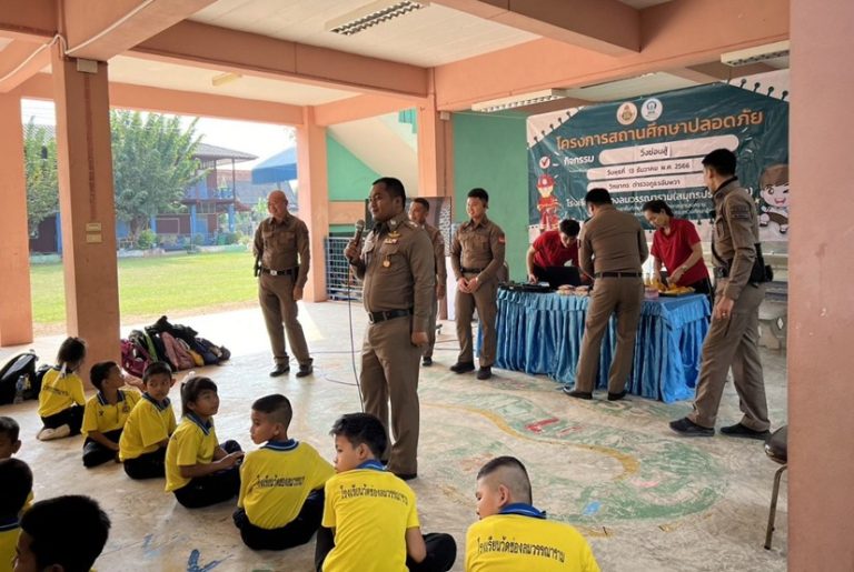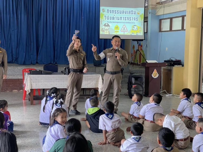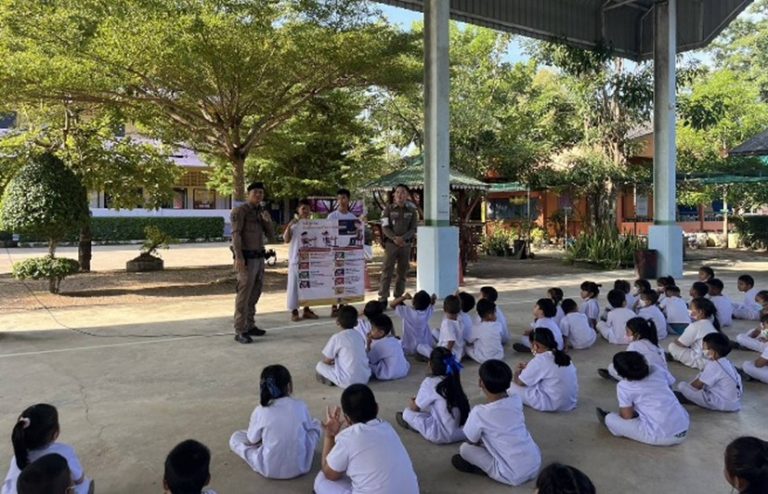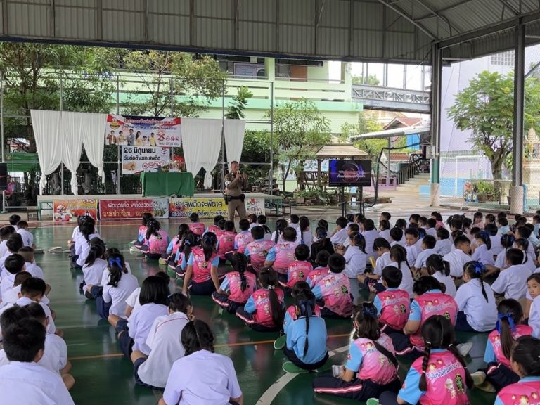 พ.ต.ท.ชยุต ยอดยิ่งนาทกุล รอง ผกก.ป.สภ.อัมพวา อบรมให้ความรู้ในกิจกรรม วันต่อต้านยาเสพติดโลก เพื่อให้นักเรียนได้รับความรู้...