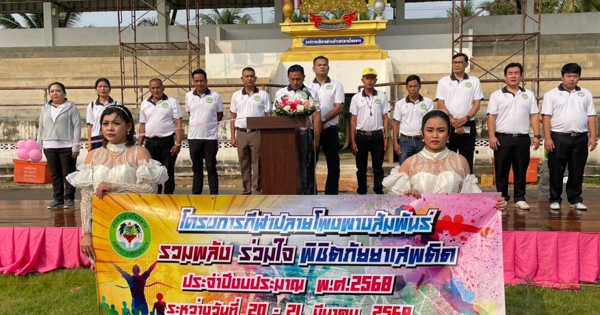 พร้อมข้าราชการตำรวจ สภ.อัมพวา เข้าร่วมกิจกรรม ดูแลการจราจรและความปลอดภัยความสงบเรียบร้อย โครงการงานกีฬาปลายโพงพางสัมพันธ์รวมใจพิชิตภัยยาเสพติด ครั้งที่2/2568
