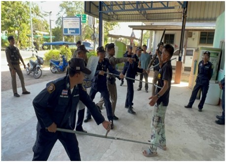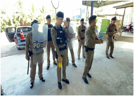 วันที่ 21 กุมภาพันธ์ 2568 เวลา 10.00 น. พ.ต.อ.เพชรกล้า ทวีกาญจน์ ผกก.สภ.อัมพวา, พ.ต.ท.สมชัย คงคานนท์ รอง ผกก.ป.สภ.อัมพวา, พ.ต.ท.สมพงษ์ สาระกิจ สวป.สภ.อัมพวา, พร้อมข้าราชการตำรวจ สภ.อัมพวา ร่วมกับ ผู้นำชุมชน กำนัน ผู้ใหญ่บ้านฝึกอบรมให้ความรู้ “อาสาสมัครตำรวจบ้าน” และ “อาสาสมัครจราจร” ต.วัดประดู่ อ.อัมพวา จ.สมุทรสงคราม เพื่อสร้างภาคีเครือข่ายภาคประชาสังคม ซักซ้อมแผนเผชิญเหตุคนคลุ้มคลั่งตามยุทธวิธี SOP เพิ่มประสิทธิภาพในการป้องกันปราบปรามอาชญากรรม ป้องกันและลดอุบัติเหตุทางถนน ในพื้นที่รับผิดชอบ สภ.อัมพวา
