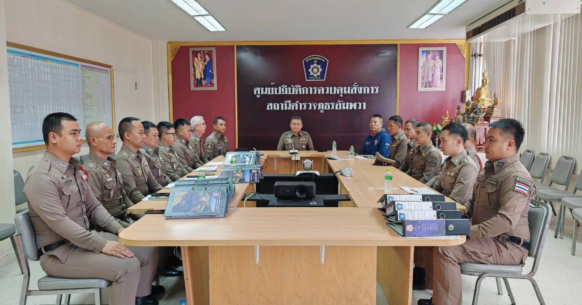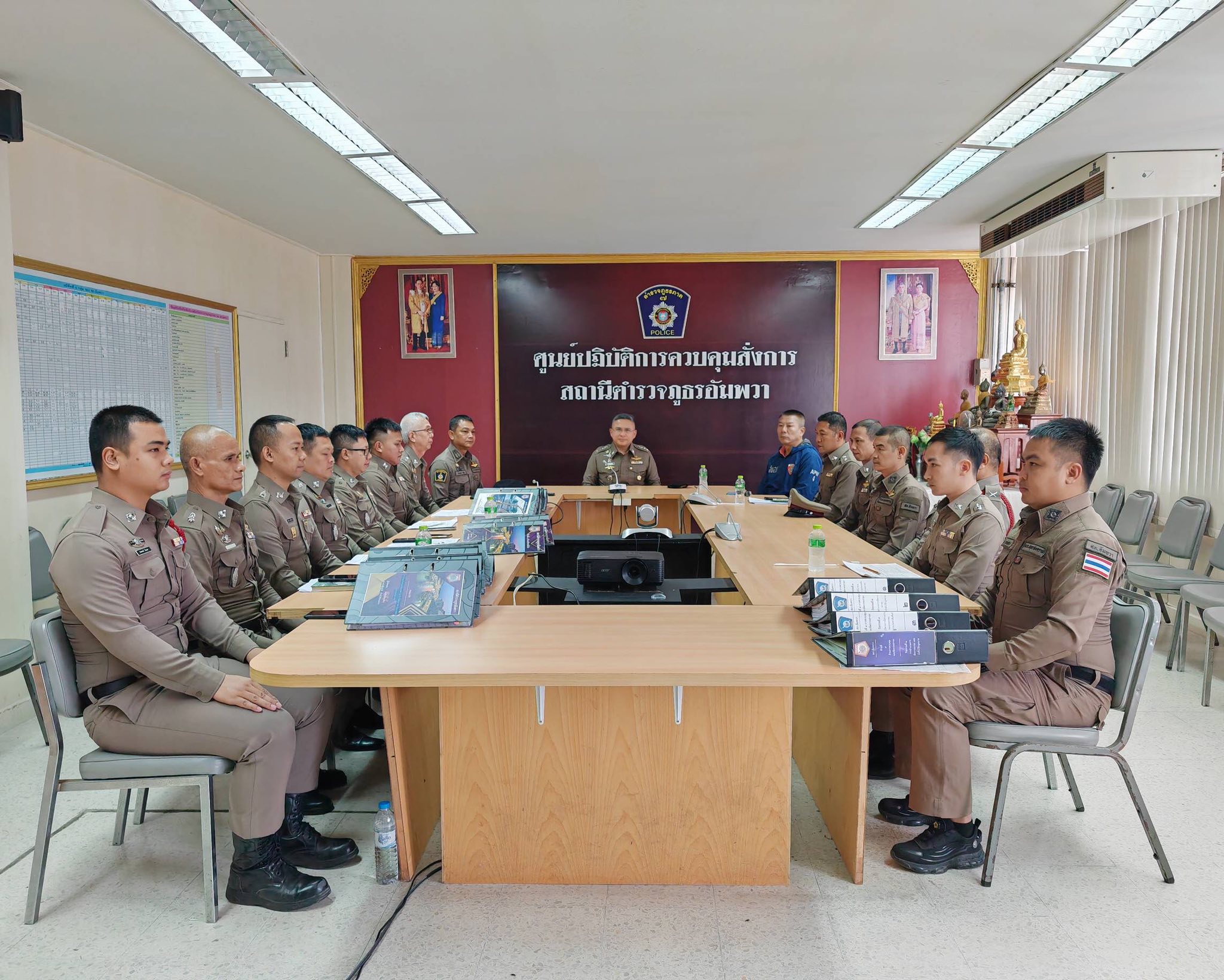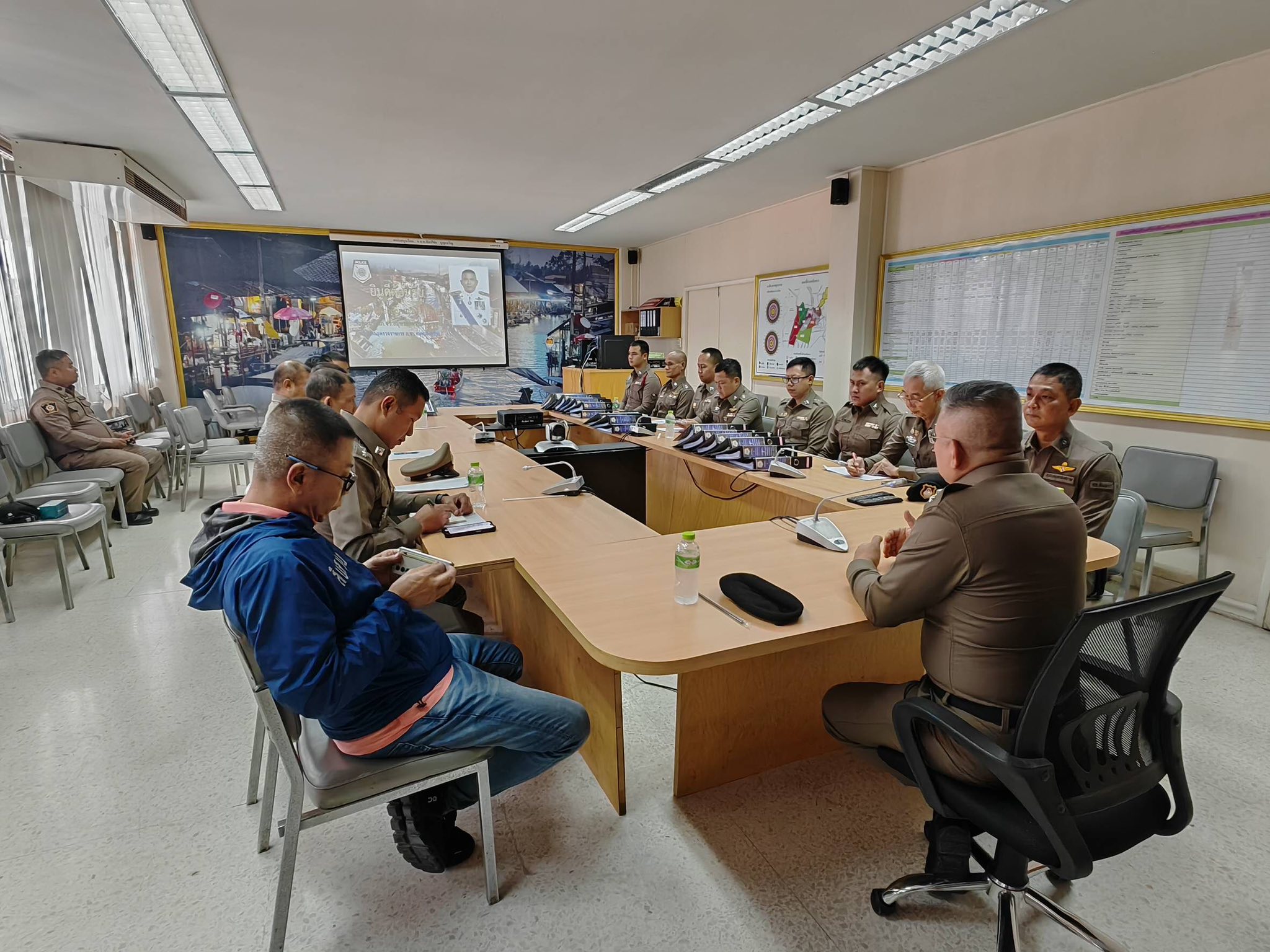 และข้าราชการตำรวจในสังกัด สภ.อัมพวา เข้าร่วมประชุมเพื่อแนะนำการตรวจราชการตามแบบการตรวจราชการของ ตร.ประจำปีงบประมาณ 2568