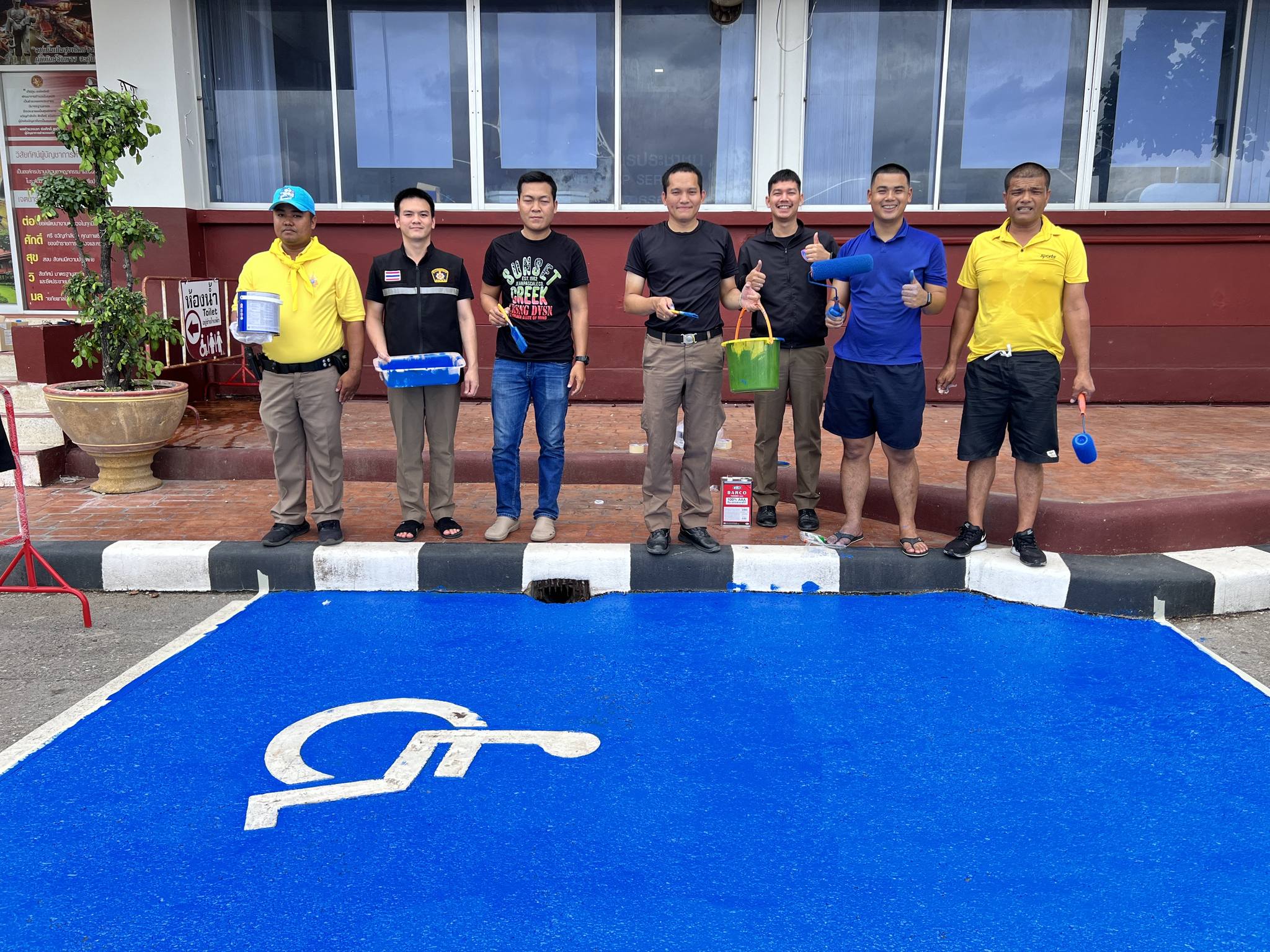 กิจกรรม จิตอาสาพัฒนา ( จราจร ) โดยการทาสีจุดจอดรถคนพิการ และทาสีขอบฟุตบาทบริเวณโดยรอบสถานีตำรวจภูธรอัมพวาเพื่อสาธารณประโยชน์