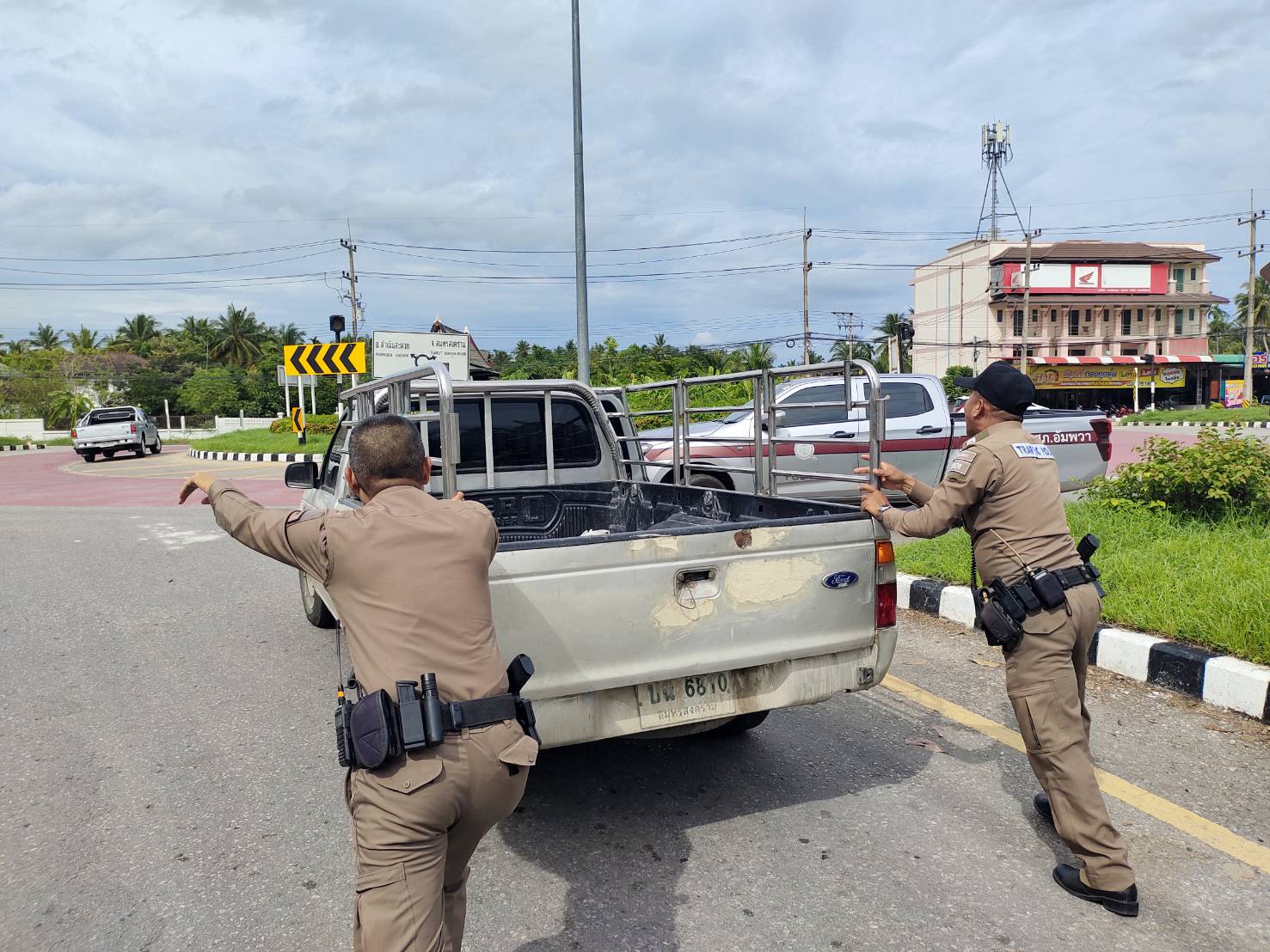 ออกตรวจพื้นที่ พบรถยนต์ของประชาชนดับสตาร์ทไม่ติด บริเวรวงเวียนอัมพวาเจ้าหน้าที่ตำรวจ สภ.อัมพวา จึงได้เข้าไปให้ความช่วยเหลือประชาชนช่วยเข็ญเข้าที่ลาดจอดเรียบร้อย