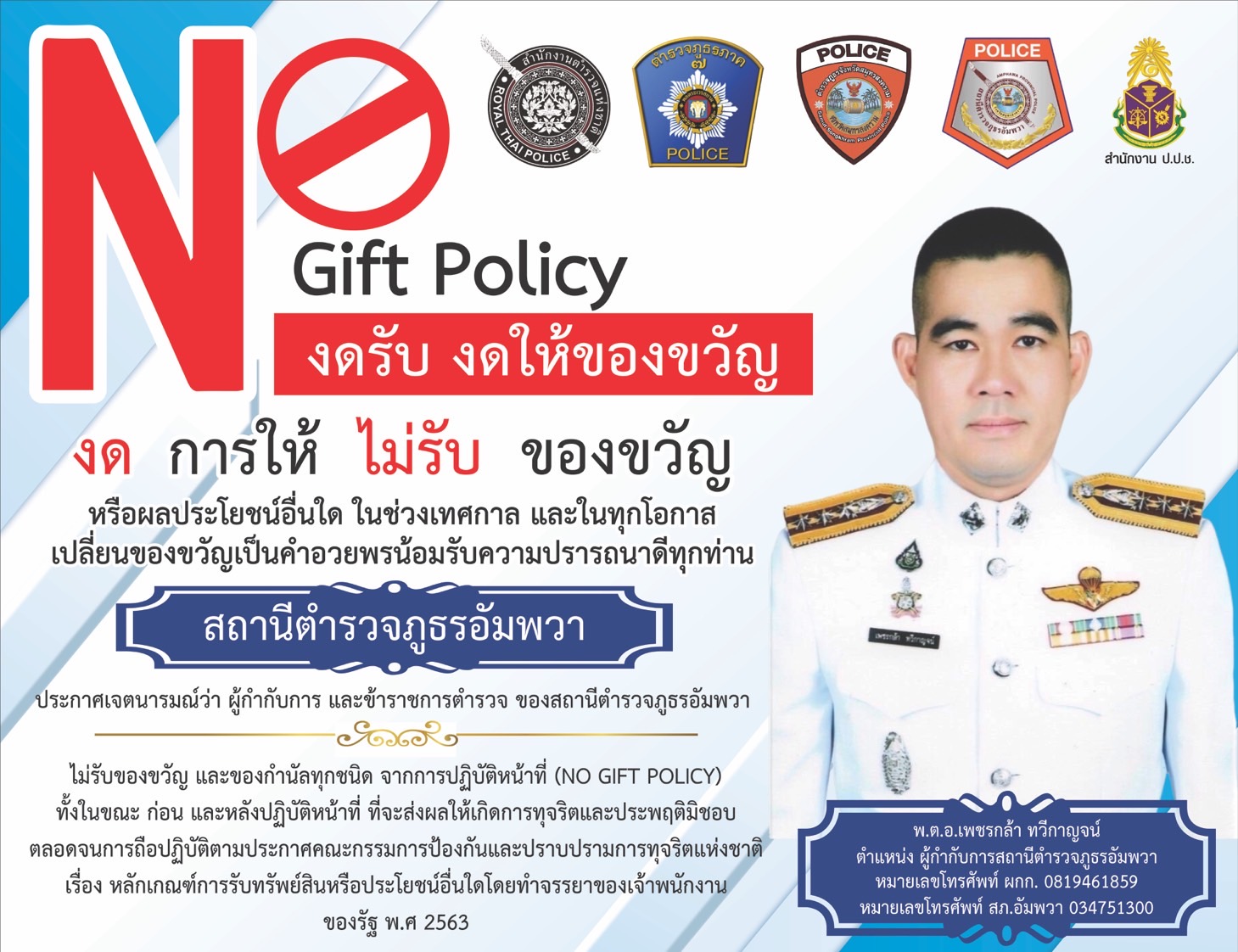 ประกาศเจตจำนงค์สุจริตในการบริหารงานสถานีตำรวจภูธรอัมพวา