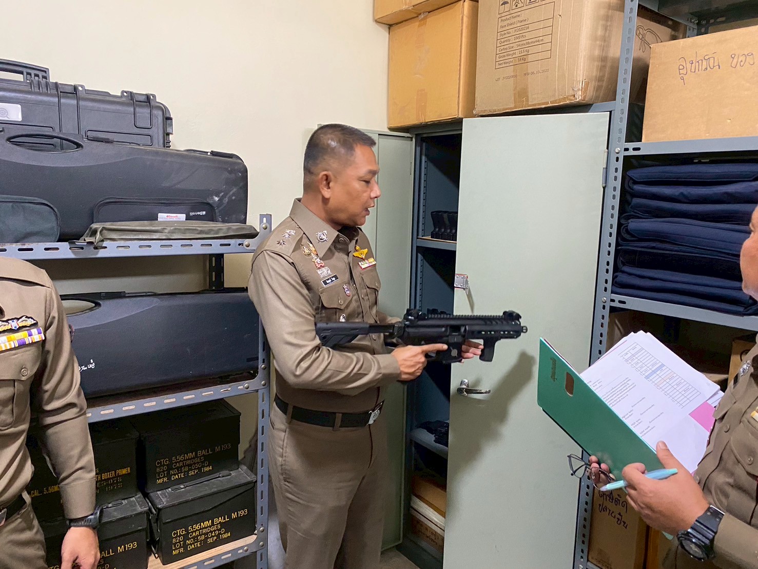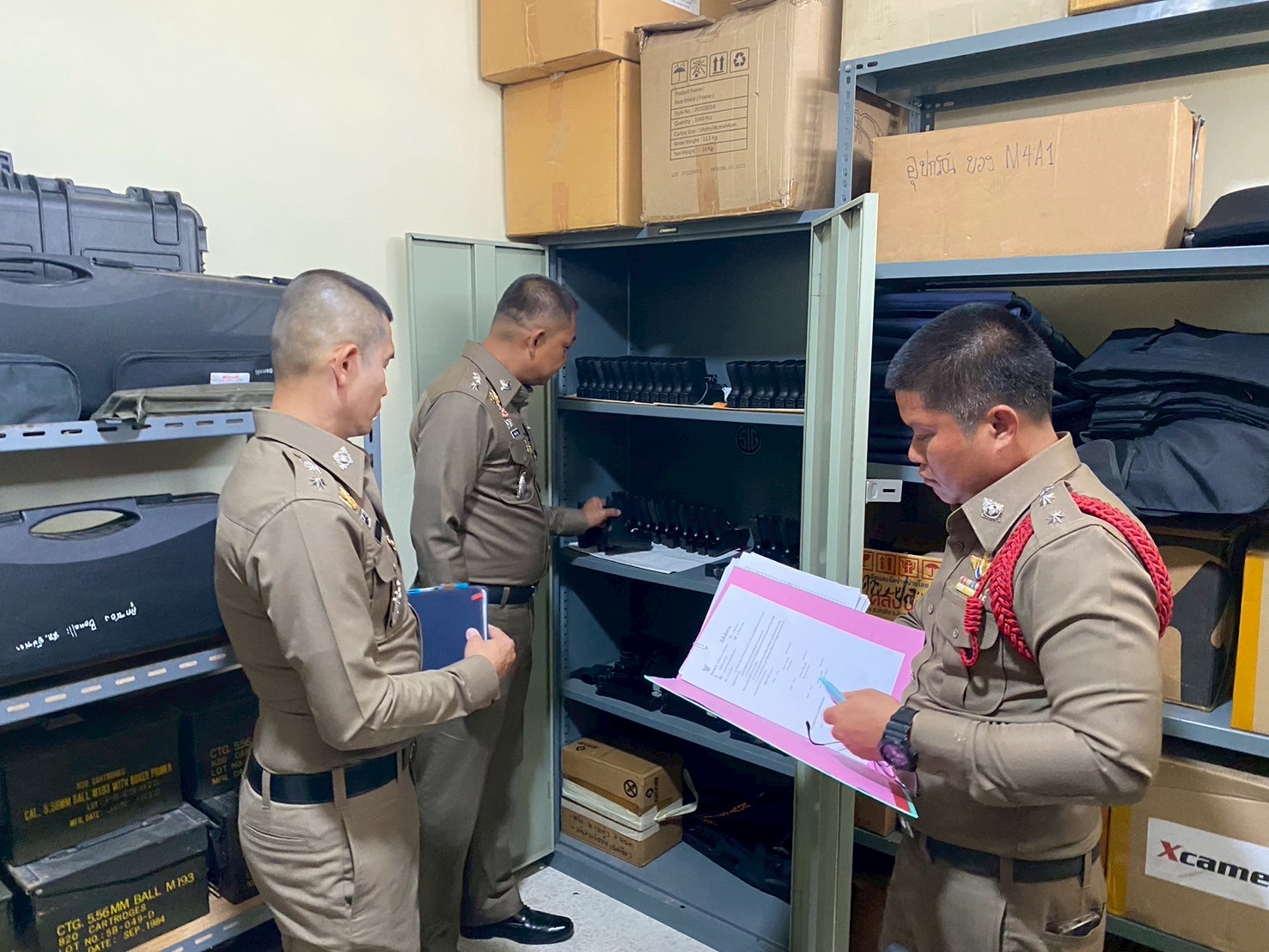 ตรวจสอบและตรวจนับอาวุธยุทธภัณฑ์ของสถานีตำรวจเพื่อให้มีความพร้อมต่อการใช้งานในภารกิจประจำวัน