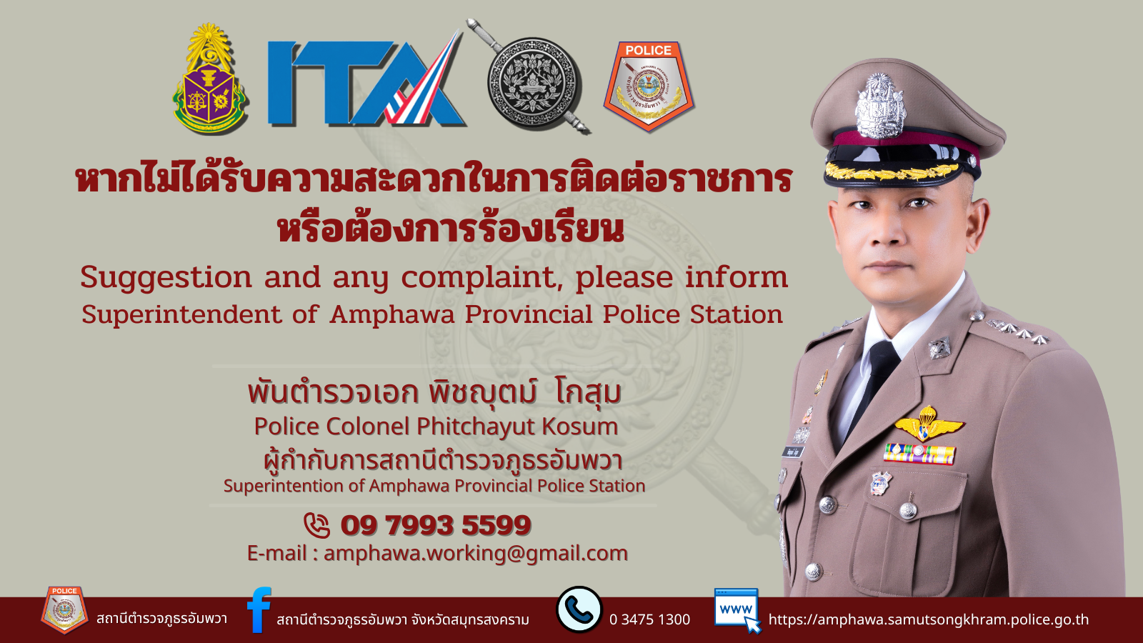 ช่องทางการแจ้งเรื่องร้องเรียนการทุจริตของสถานีตำรวภูธรอัมพวา